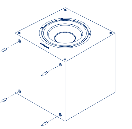 1. Firstly, fix the supplied feet to the subwoofer cabinet using the included screws