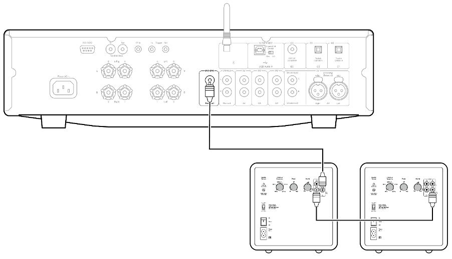 If you wish to connect a second subwoofer to your setup, this can be done using the line out connections on the rear of your Minx X201. Connect the line out of your X201 to the line in of a secondary subwoofer and adjust the controls accordingly to achieve your desired sound.