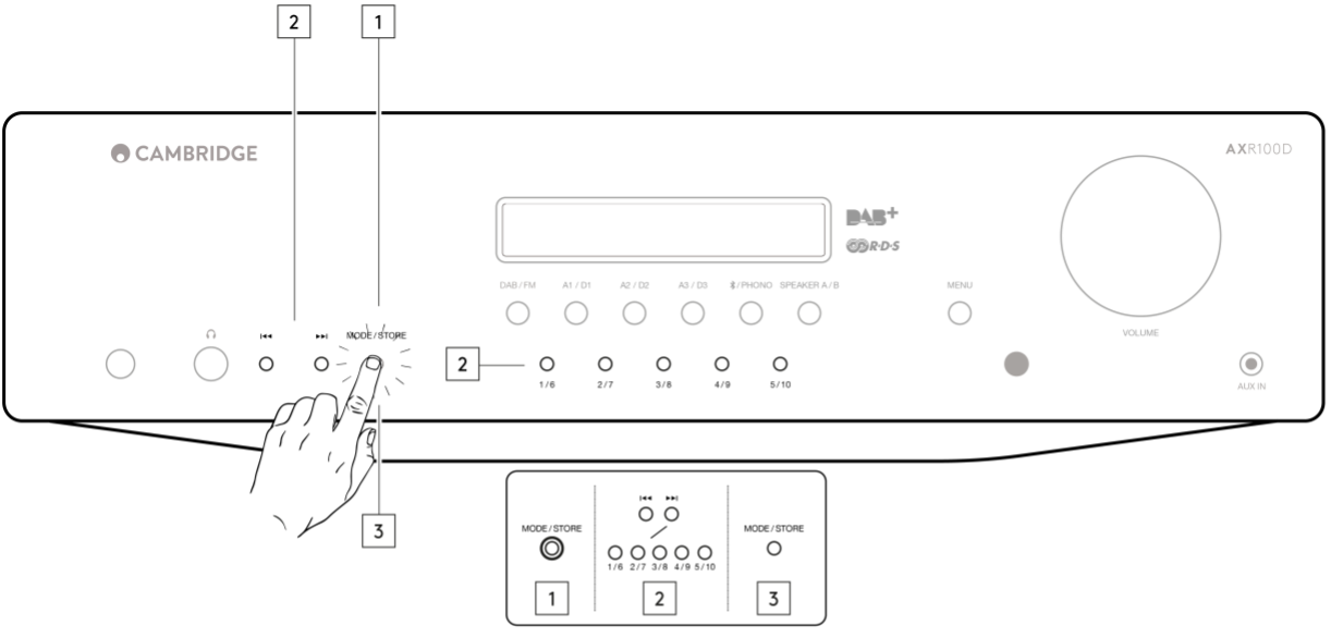 Note: You can store up to 40 presets for each band (i.e. 40 presets for the DAB band plus 40 presets for the FM band).