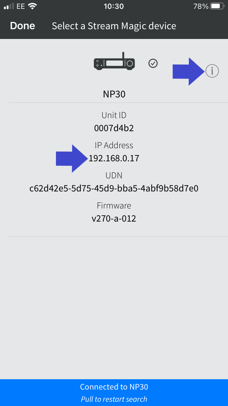 Note: We only suggest following the steps below if you are using one of our older network players (Stream Magic 6 V1, NP30, and Minx Xi), which the Cambridge Connect app is intended to be used with.