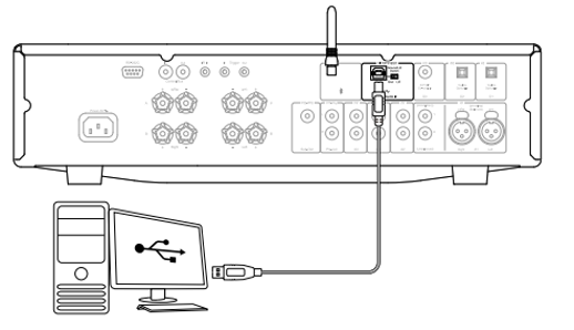 1. With the CXA in Standby mode and/or the volume set to minimum, connect your Mac to the CXA via a USB A to B cable, or C to B cable depending on the USB ports on your Mac