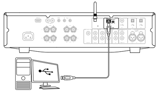 1. With the CXA in Standby mode and/or the volume set to minimum, connect your PC to the CXA via a USB A to B cable