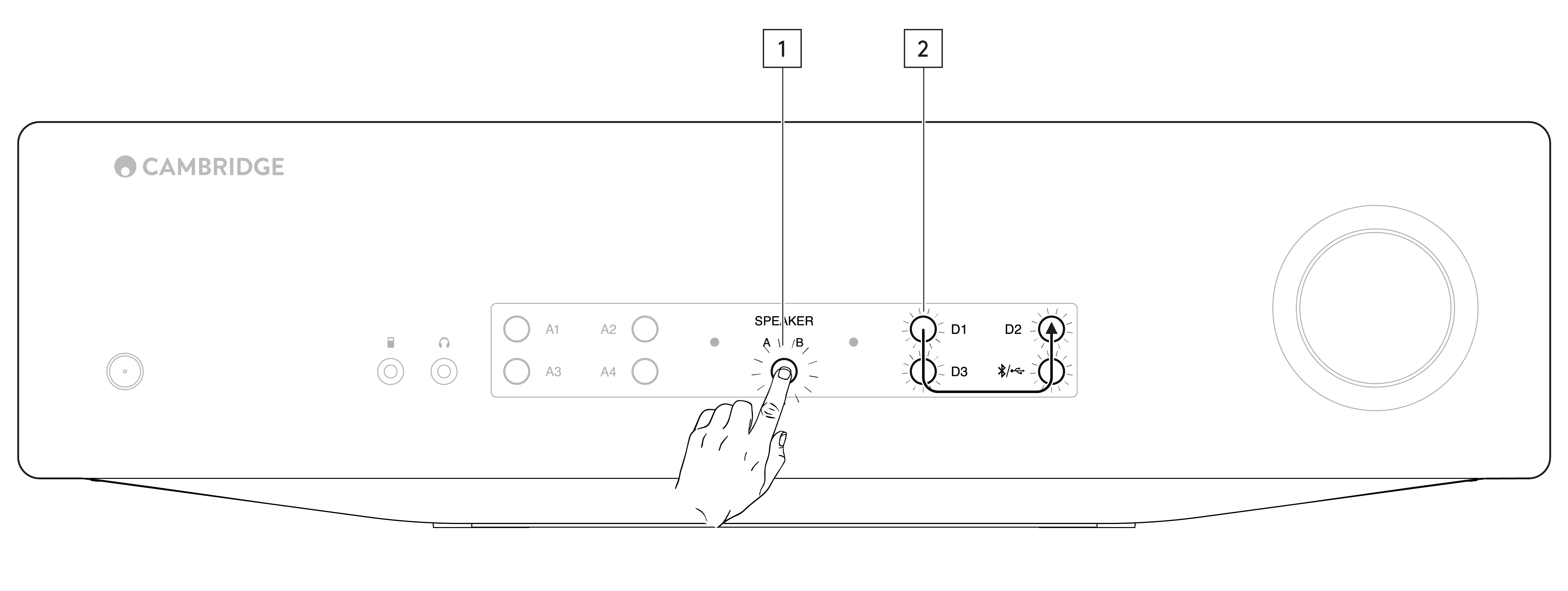 Whilst the CXA is in standby mode, press and hold the speaker A/B button;