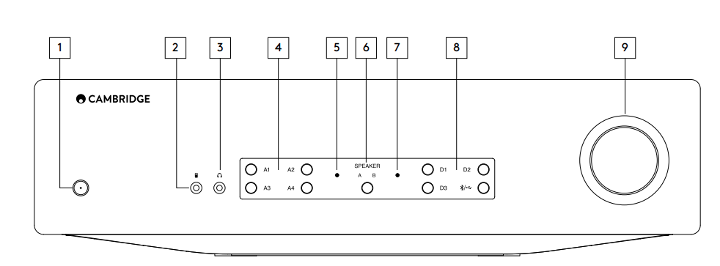4. Make sure the selected speaker A/B light corresponds to the speaker terminals that the loudspeakers are connected to