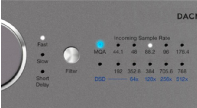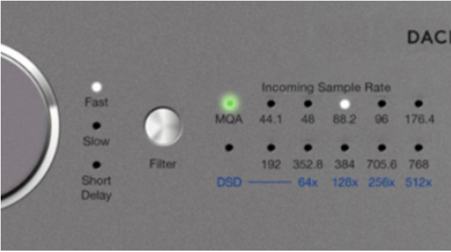 The MQA indicator LED on the front panel of the DacMagic 200M will indicate when an MQA file is being processed.