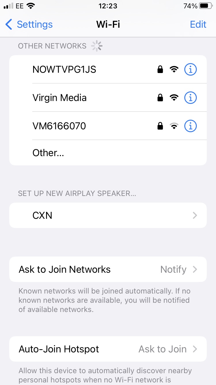2. On an iOS device go to Wi-Fi settings and under ‘SETUP NEW AIRPLAY SPEAKER’ select device
