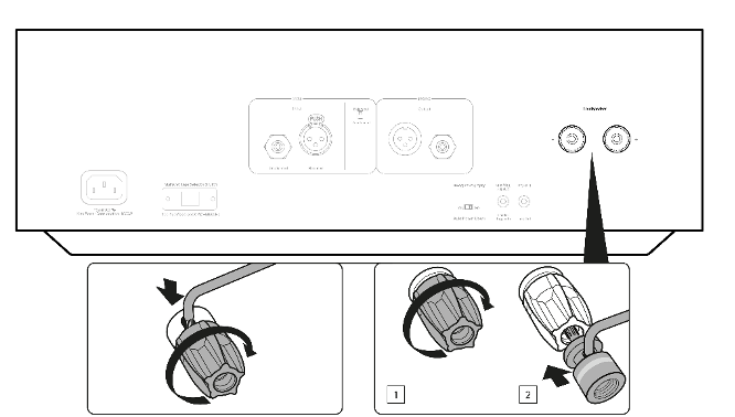 Note: When using a banana plug, make sure the speaker terminals are completely tightened before inserting the plug.