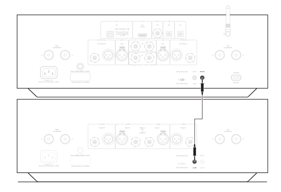 Connecting the Link Wire from 'Link Out' on the EDGE A to 'Link In' on the EDGE W will synchronize power on/standby. When you turn the EDGE A On/Off, the EDGE W will also turn On/Off.