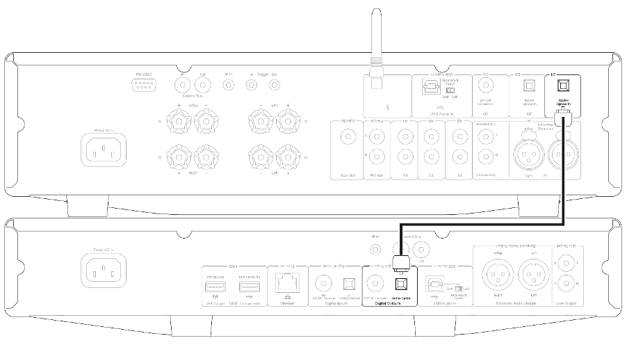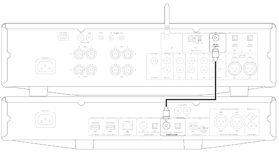 Note: If using either of the digital outputs of the CXN, the digital signal will bypass the DAC in CXN and will instead be processed by the unit connected to the digital output, E.g., CXA81