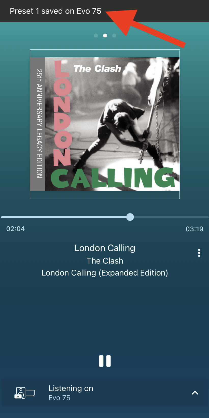 1. Stream a playlist, album or song to your Network Player via the Spotify app, then return to the playing screen on the app and press the three vertical ellipsis dots if using an iPhone as shown.