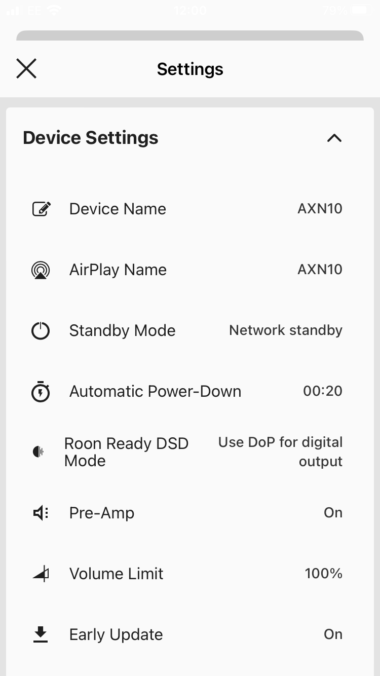 1. While your AXN/MXN is in Standby mode, navigate to the device settings in the StreamMagic app, and set Pre-Amp to 'On'