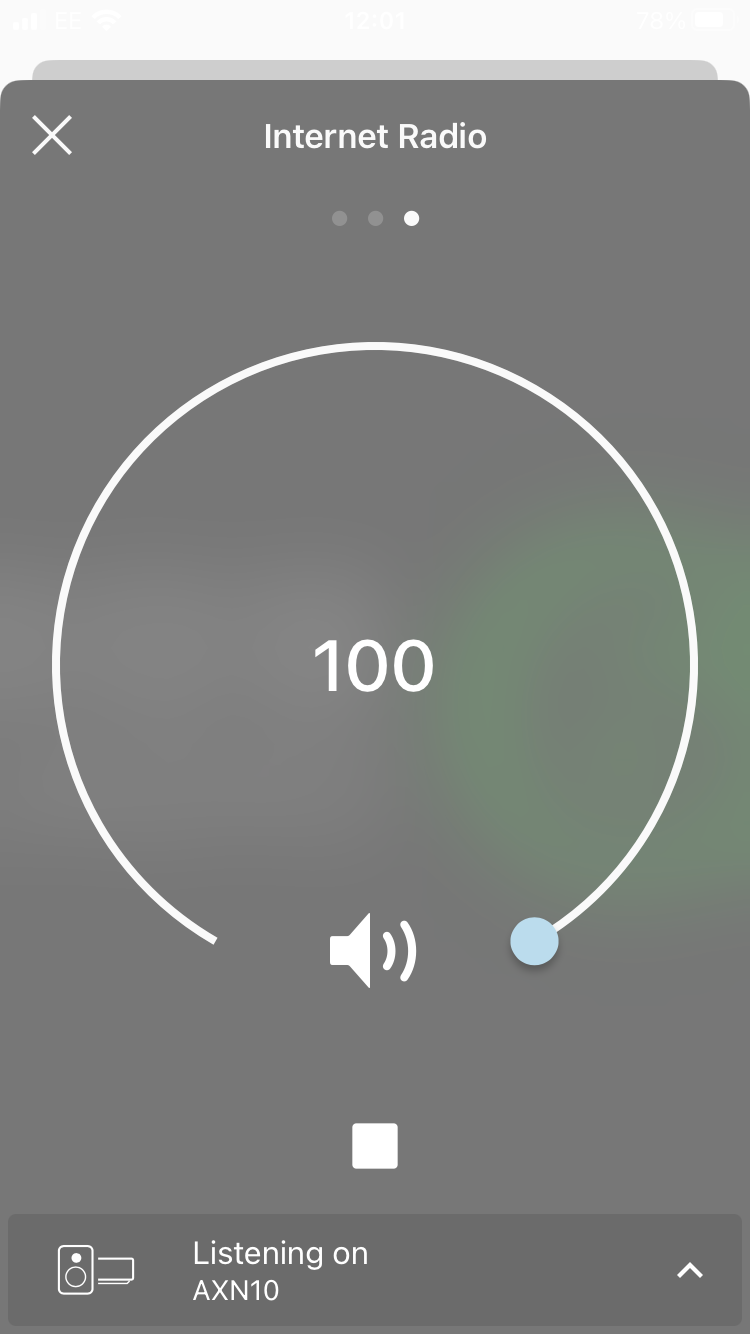 2. You will then be able to control the volume of your AXN/MXN via the app volume wheel and your device's volume controls while the app is open. The app volume icon can be found in the 'Now Playing' banner at the bottom of the app screen.