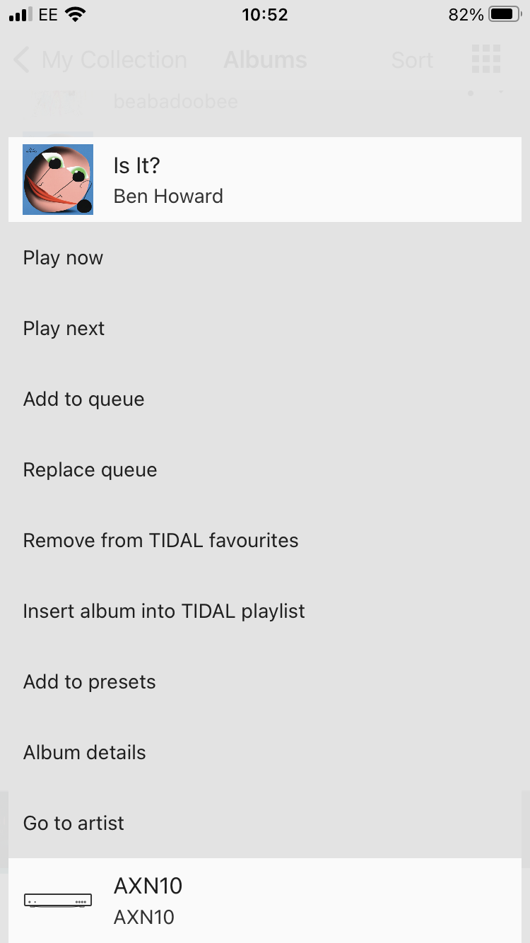 1. Sign in to TIDAL/Deezer/Qobuz in the 'Library' section of the StreamMagic app, and then find the album, playlist or song you want to add as a preset.