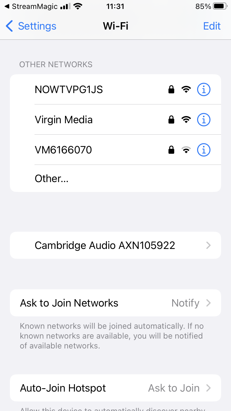 3.) Once connected, to complete unit setup download and install the StreamMagic app from the Apple App Store.