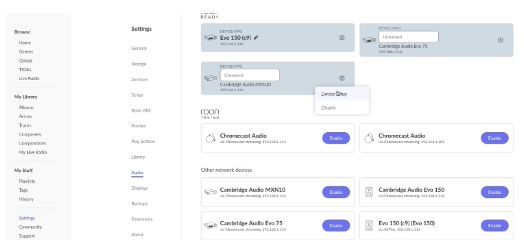 3. Within Roon’s audio settings, select the ‘Cog’ icon next to your AXN/MXN, and select ‘Device Setup’