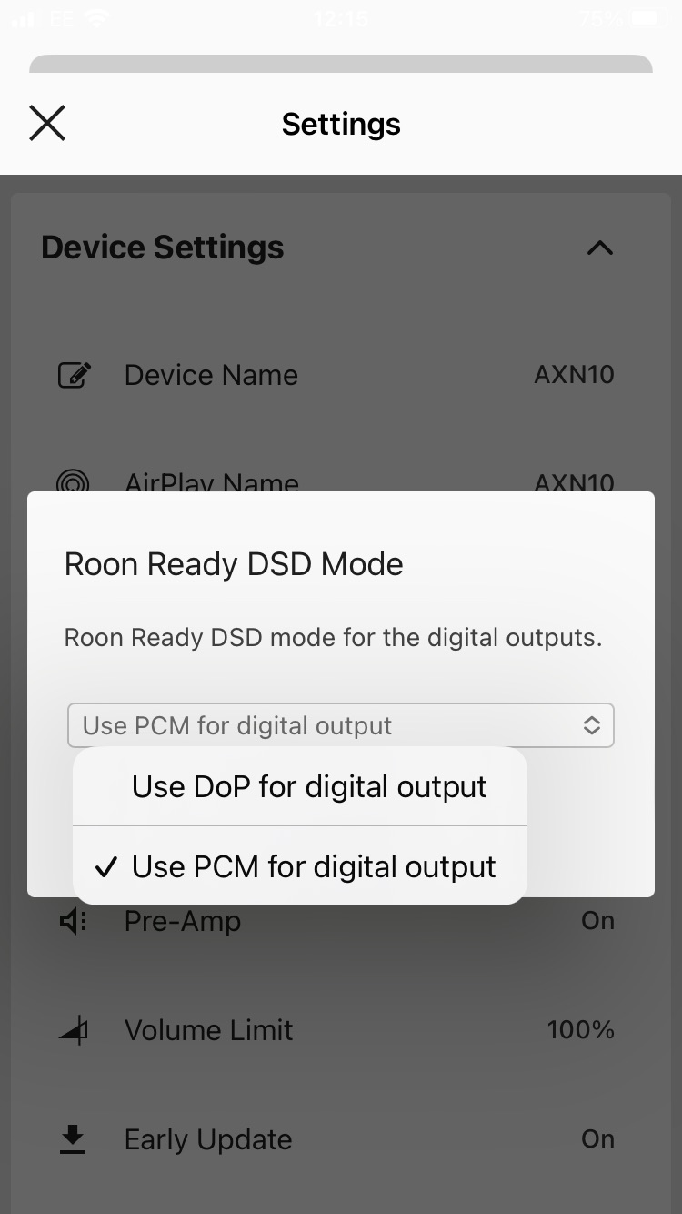 Note: This step is required as Roon’s DSP volume control does not support Native DSD