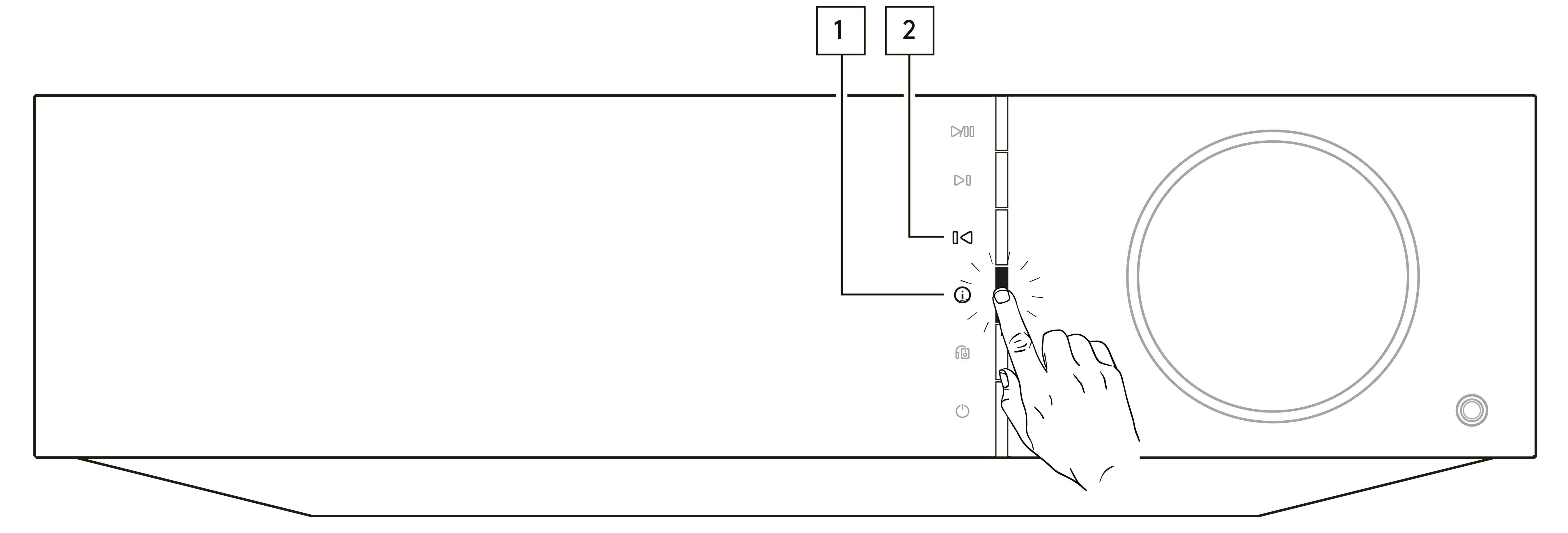 Hold down the ‘i’ (Info) button on the front panel of the EVO.
