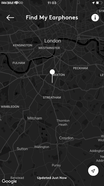The Find my Earbuds feature allows the Melomania app to use the location services of your device to record the last place they were connected to the device.