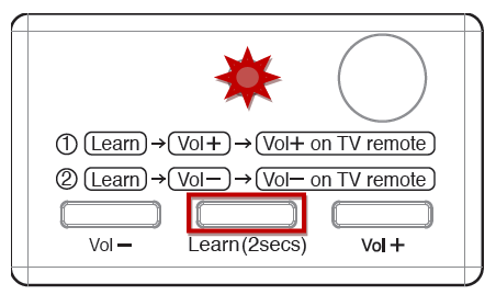Repeat steps 1-3, this time pressing the Vol+ button on both the unit (located on the right of the central ‘Learn’ button) and the remote.