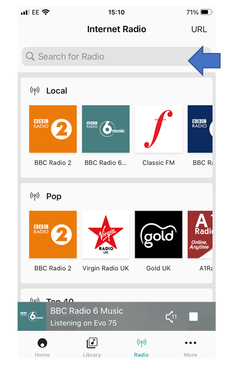 Note: Alternatively, you can select the 'URL' option and type in a radio station's URL.