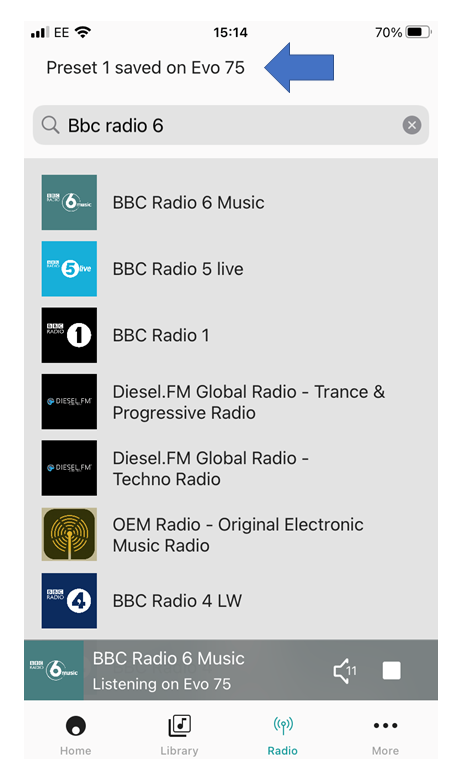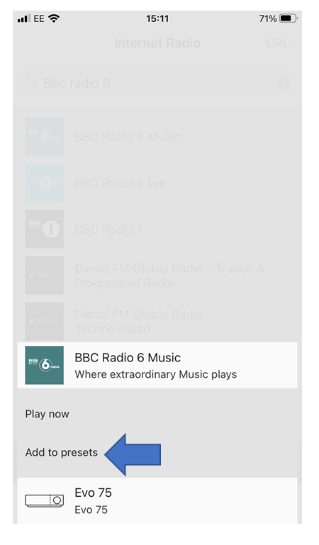 2. Select your desired radio station, and then select 'Add to Presets'