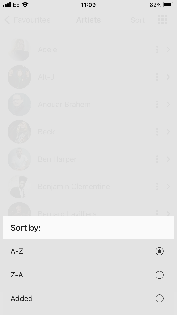 You can choose from different sorting options when viewing your favorites within the integrated streaming services in the StreamMagic app.