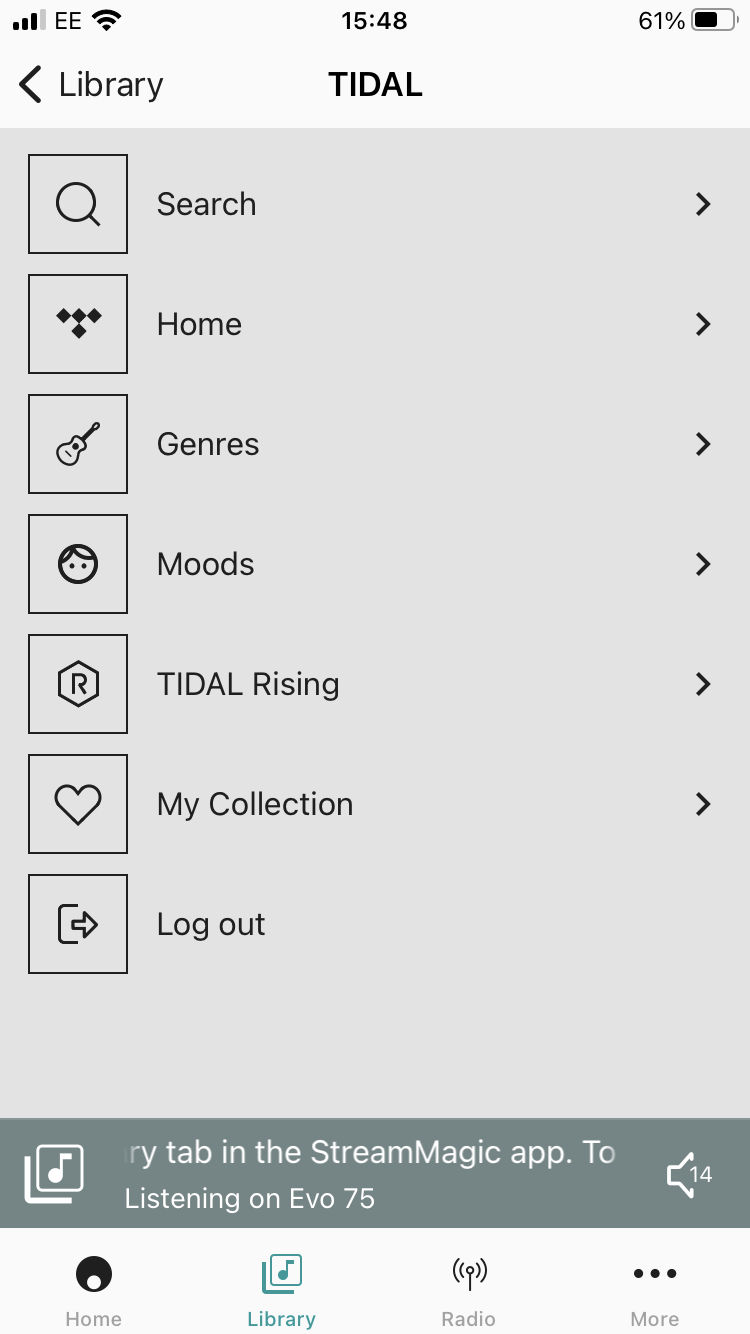 5. Select the chosen content you want to stream to your Network Player. TIDAL should now be streaming to your Network Player