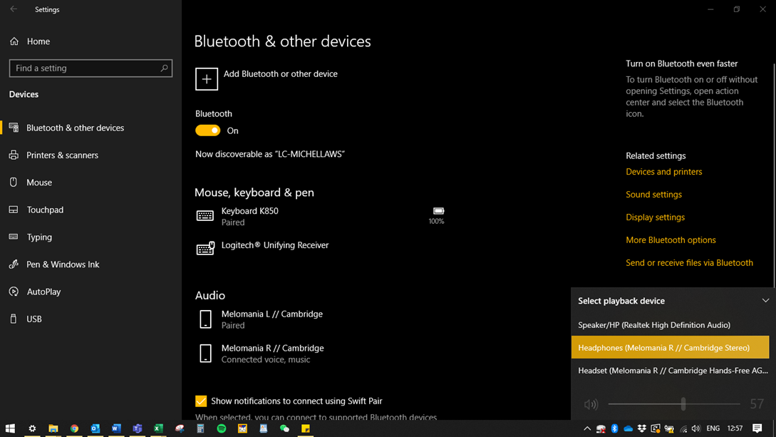 1) In the Bluetooth & other devices My Devices list press on the Melomania 1/1+ L or R.