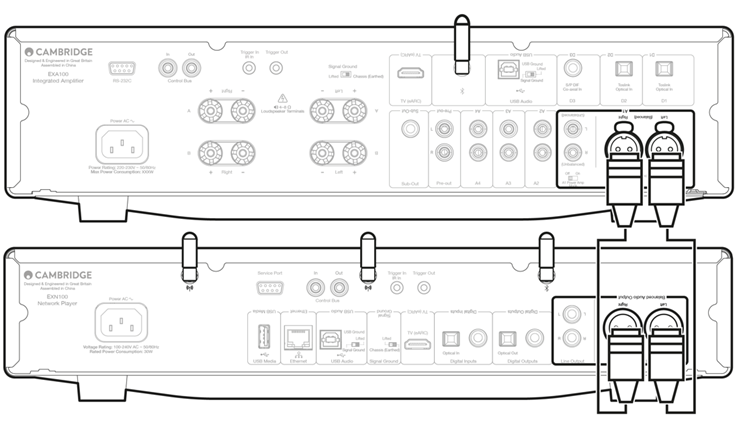 Using RCA cables will enable an unbalanced analog connection to your EXA. RCA cables are very convenient and fairly cheap, whilst still providing excellent quality.