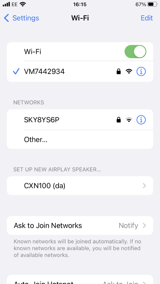2. Go to the Wi-Fi settings on your iOS device and under ‘SETUP NEW AIRPLAY SPEAKER’