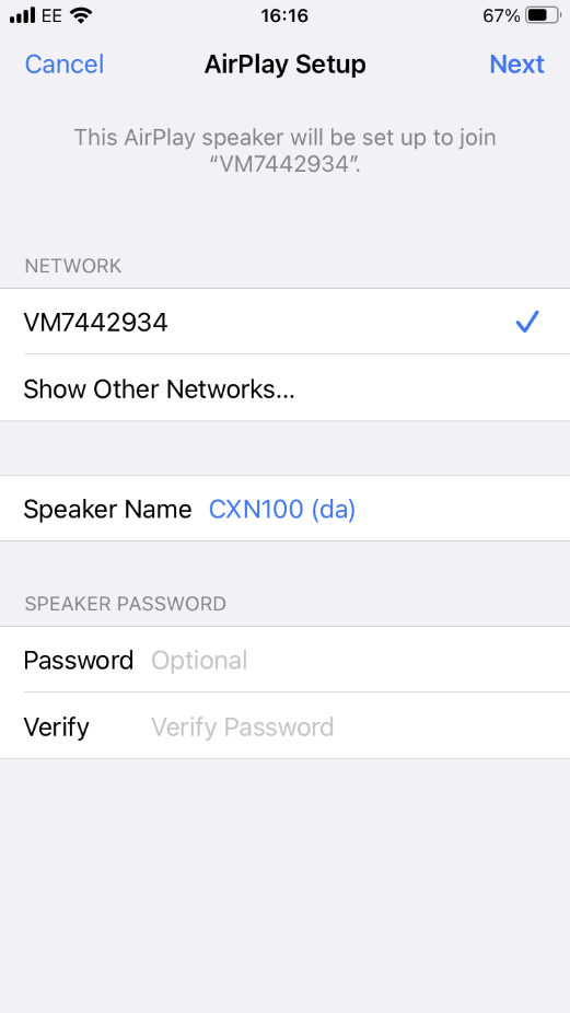 Note: Some iOS devices won't show an option for 'AirPlay Speaker'. In this instance still select the name of your Network Player.