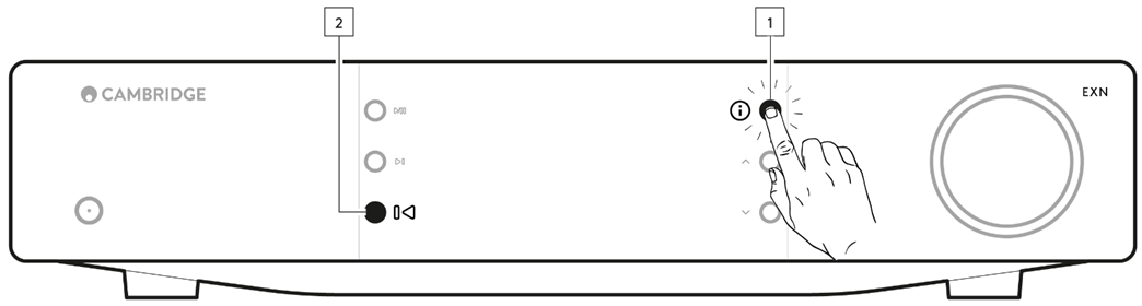- Hold down the ‘i’ (Info) button on the front panel.