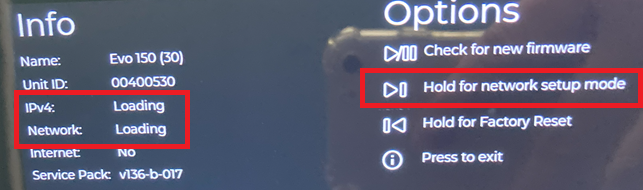 2. Follow the instructions on the info screen for ''Network setup mode'.